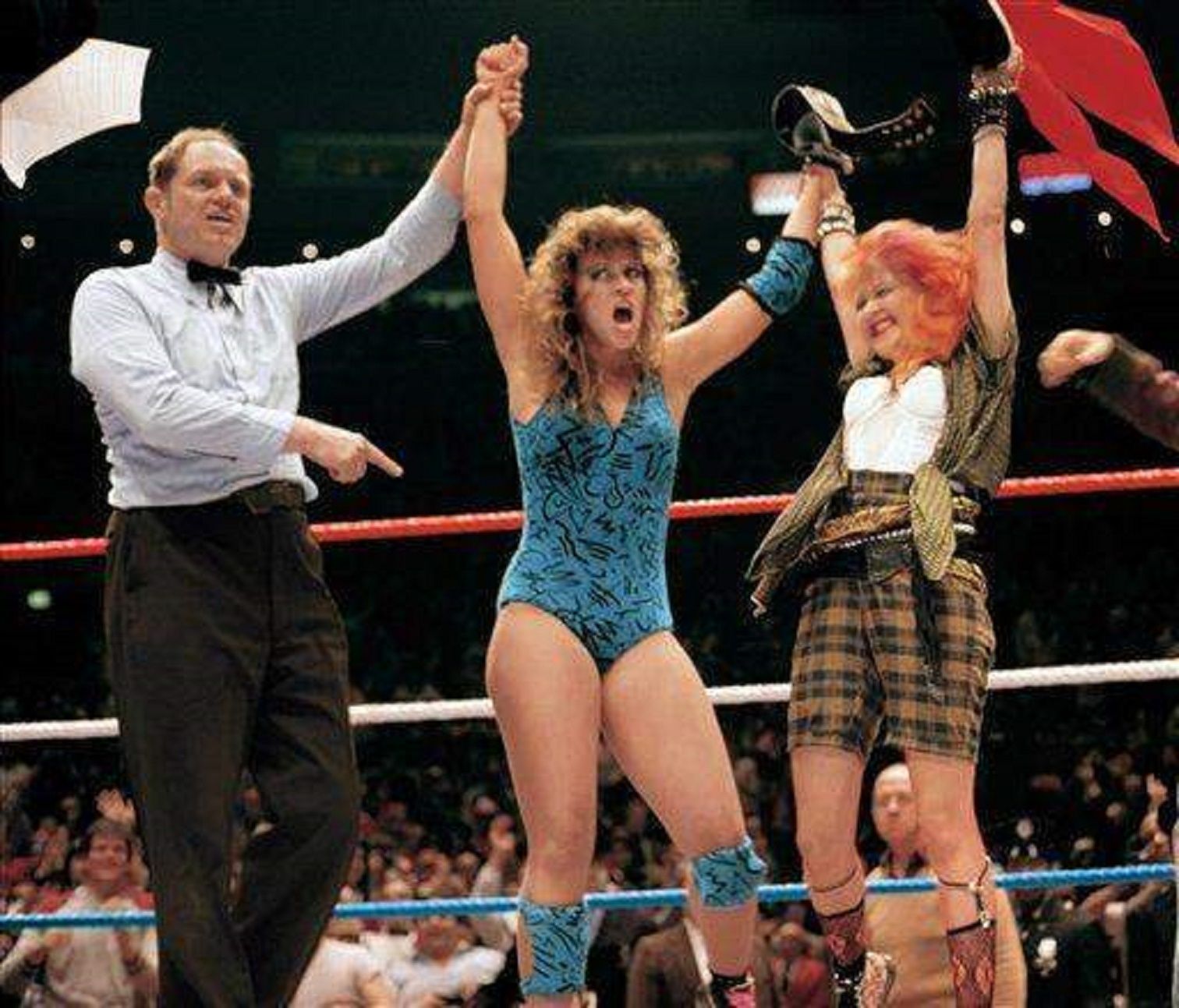 The Baddest-Woman on the -Planet locks up with (Ruby Riott,) as The Bella Twins and The Riott Squad-look on from-ringsideFrom a Matter Of Pride Wrestling: at . . .