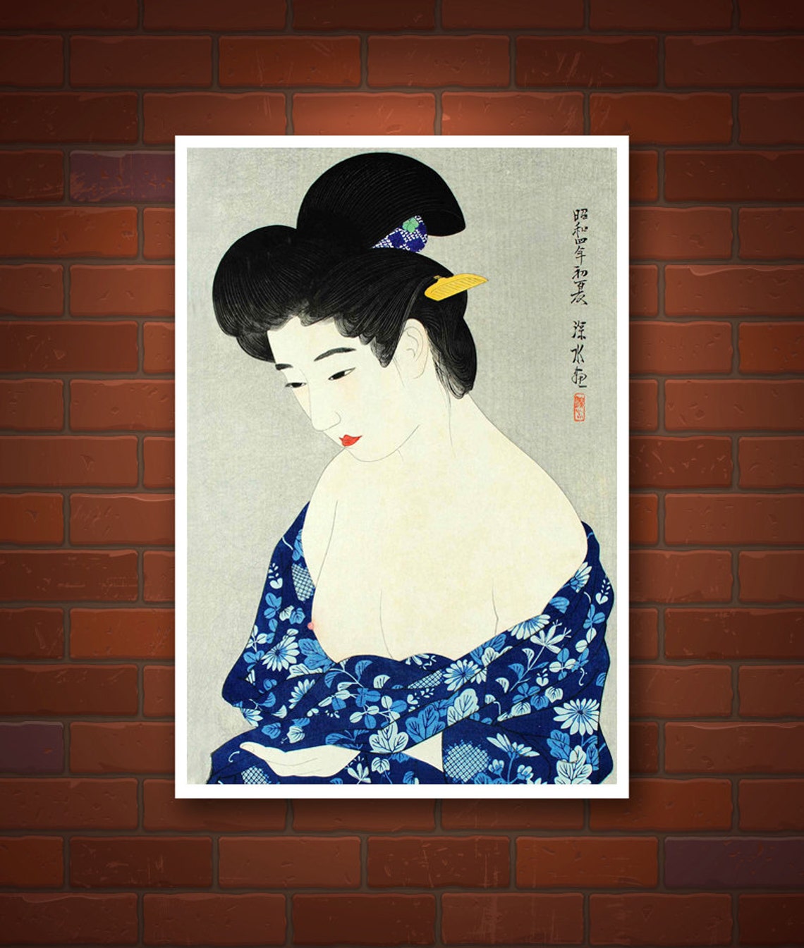Oban yoko-e size: 14 1/5” x 10 1/5” inches. Series: ‘Grass On the Way Of Love (Koi no Michikusa).