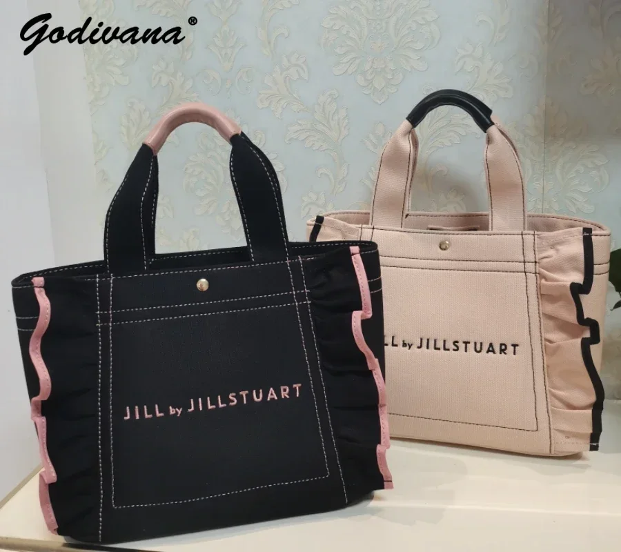 OgmooJKxcFHere you can buy Japanese Fashion Small Ruffled Embroidered Letters Girls' Handbag Multicolor Portable Female Canvas Tote Bags Casual Square Bags with free delivery to your post office.