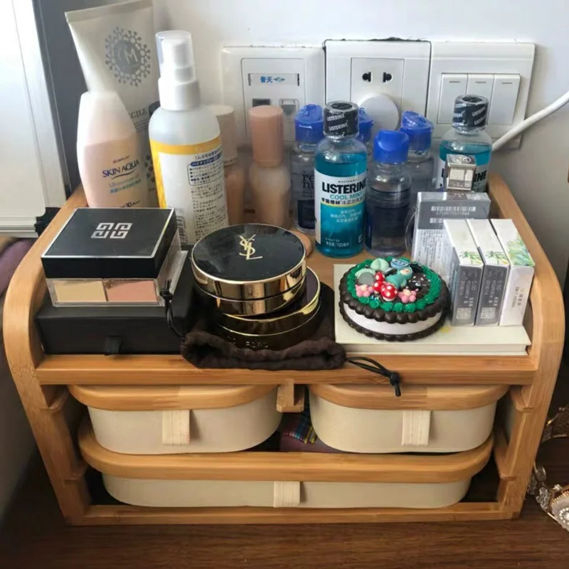 Japanese-Style Office Desk Surface Panel Cosmetics Storage Box Drawer Dustproof Storage Rack Wood Multi-Layer Tea Storage - Купить с бесплатной доставкой