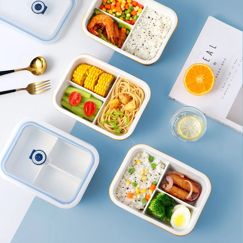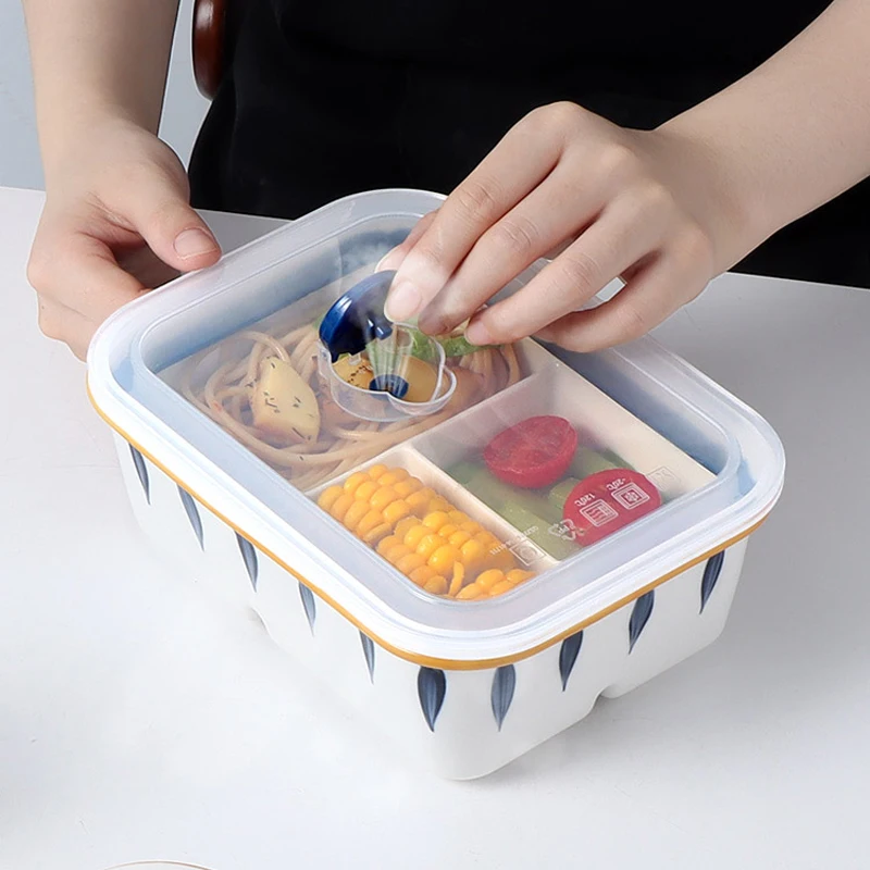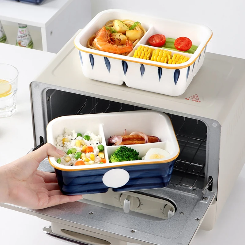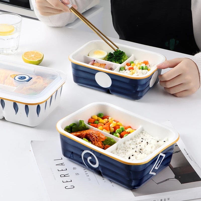 Japanese-style Ceramic Separated Lunch Box Rectangular with Lunch Box Microwave Heating Lunch Box with Lid Storage Box Tableware - Купить с бесплатной доставкой