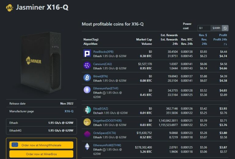Jasminer x16 qe доходность