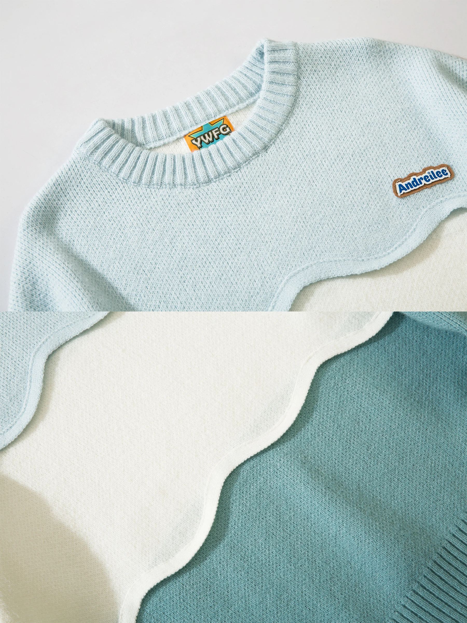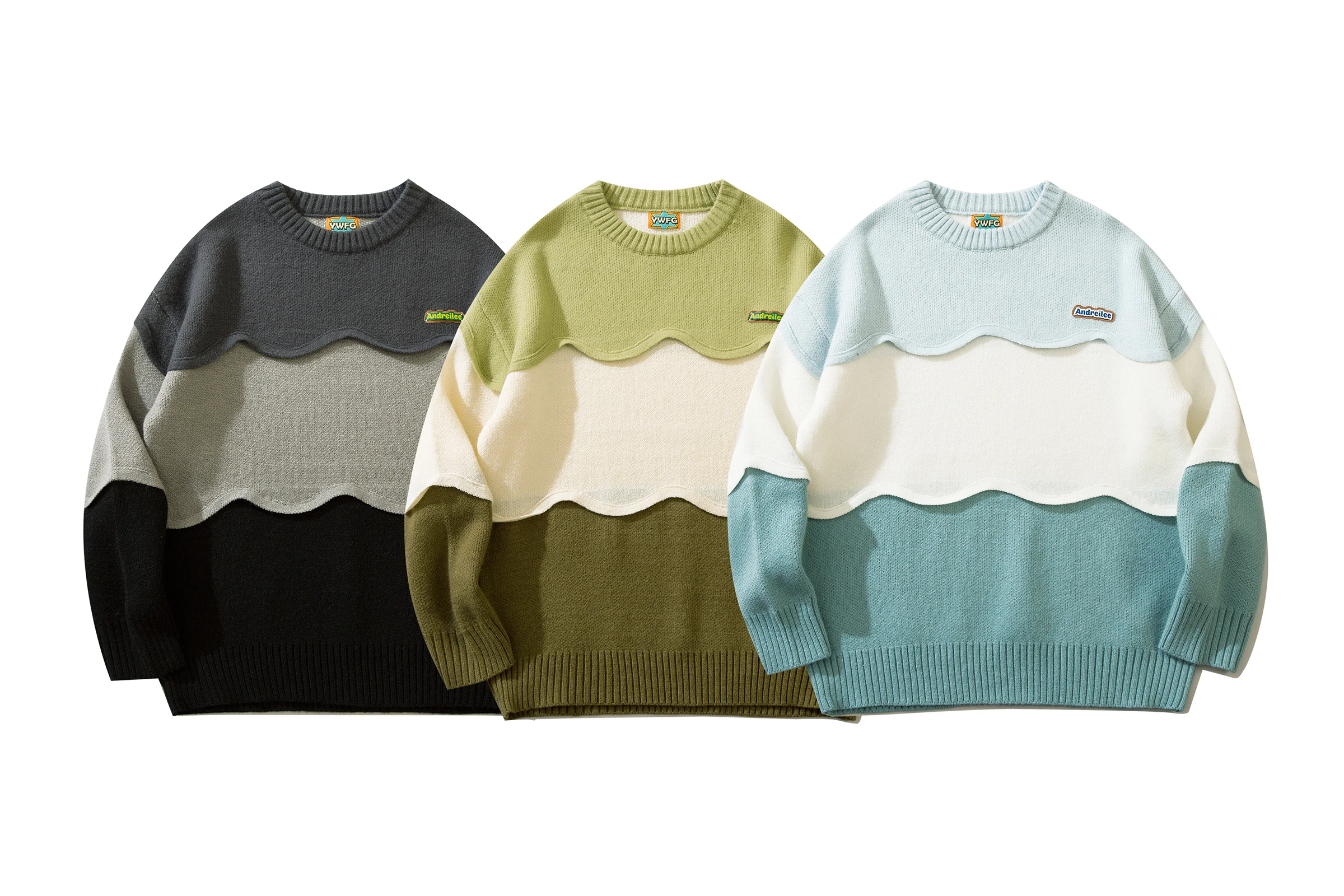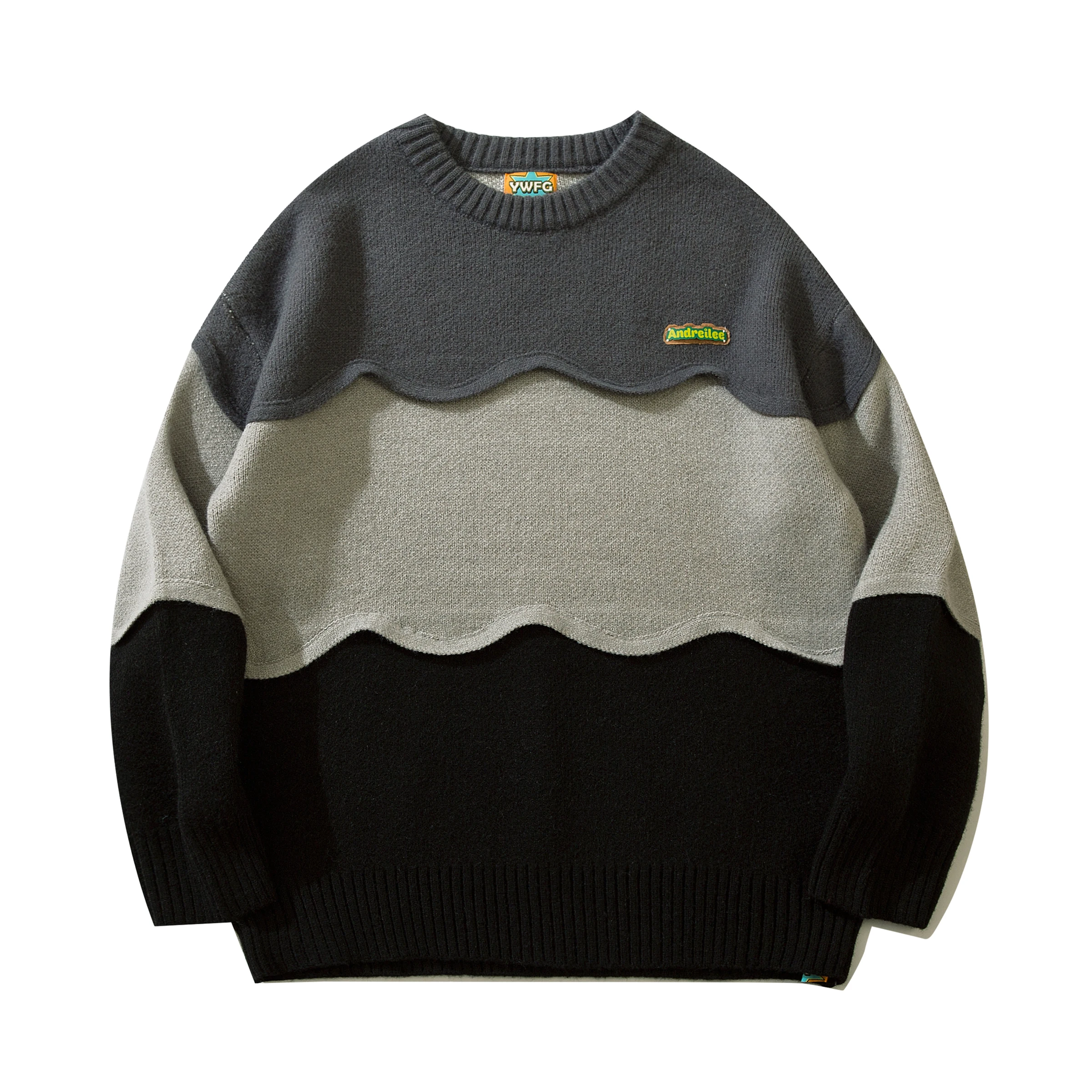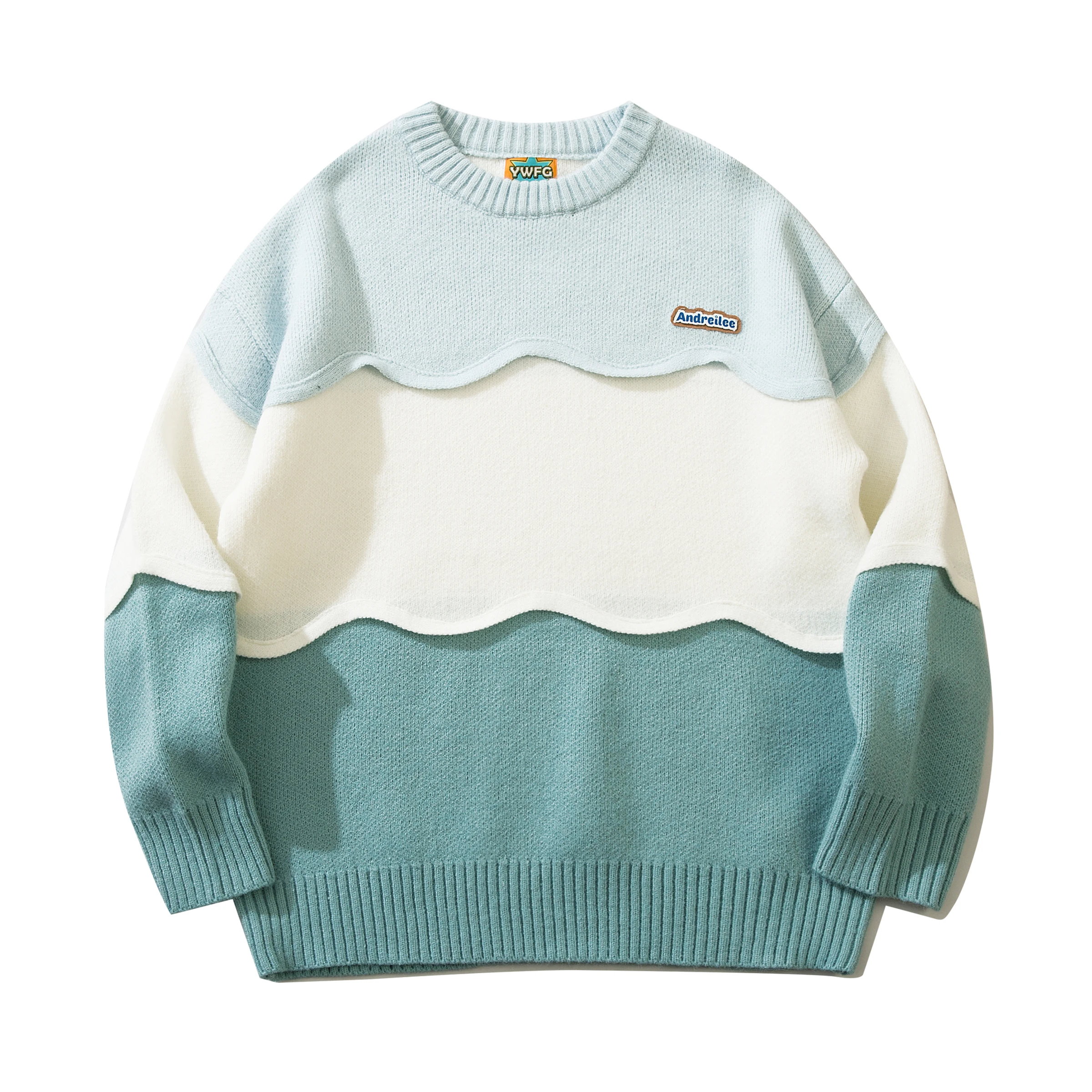Jaykoo Patchwork Jacquard Weaving Loose Neutral Twist Simple Contrast Color Wave Stitching Hand Crochet Design Knit Sw - Купить с бесплатной доставкой