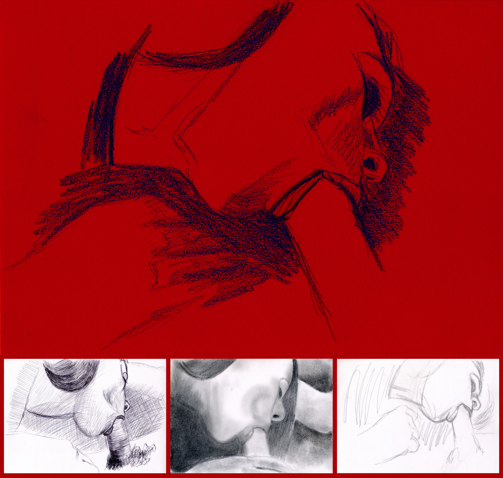 La caméra va filmer quatre hommes qui baisent
