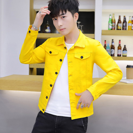 Jeans Coats Jacket Men's Korean Style Spring and Autumn Denim Jacket Slim Long-sleeved Casual Denim Jacket Solid Color Young Boy
