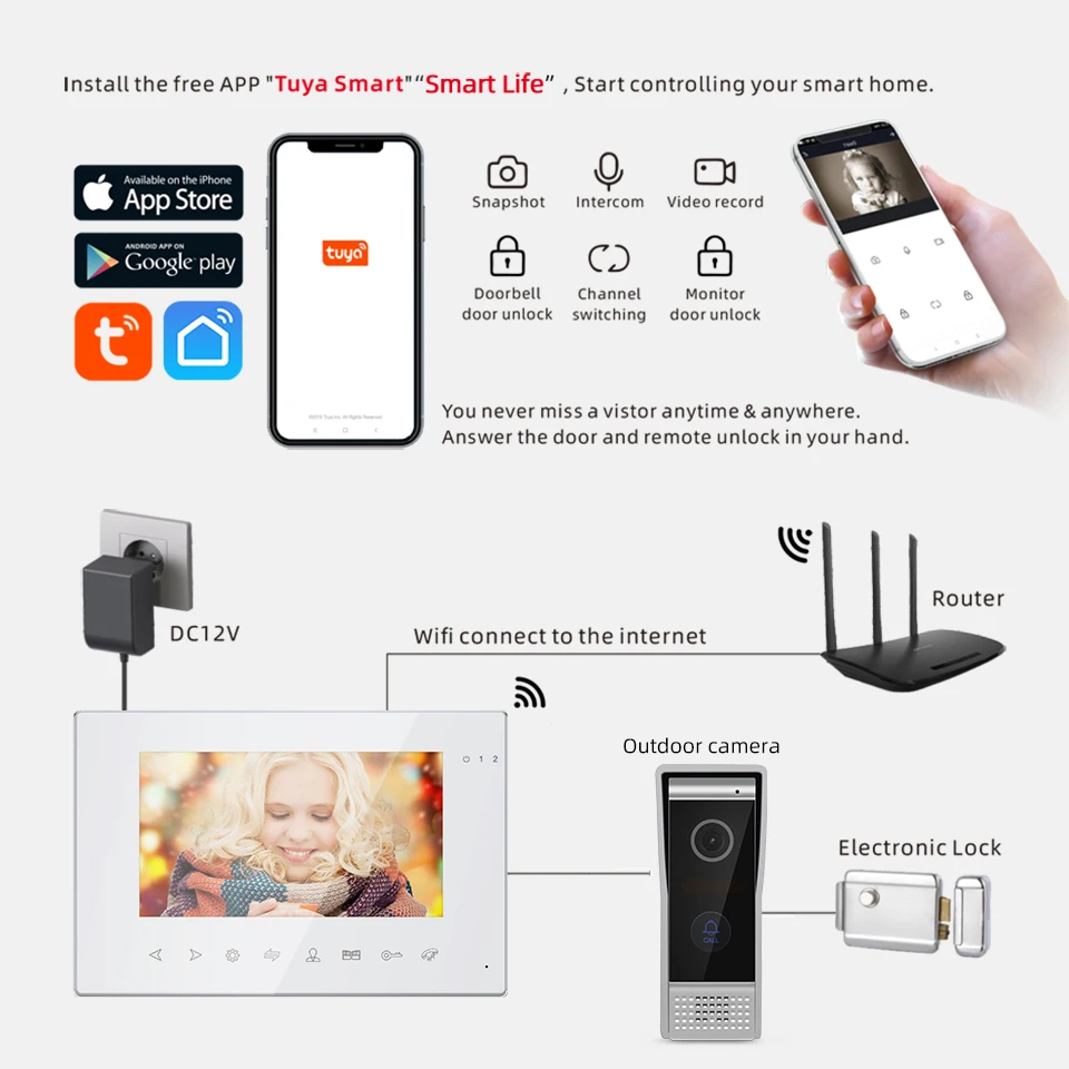 xedoFymxЗдесь вы сможете купить Jeatone 7Inch Tuya Wifi Monitor Video Intercom with Multi-language Remote APP Control & Motion Detection & unlock & Night Vision с бесплатной доставкой до вашего почтового отделения.