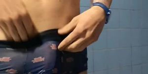 Jerking off the swimming pool