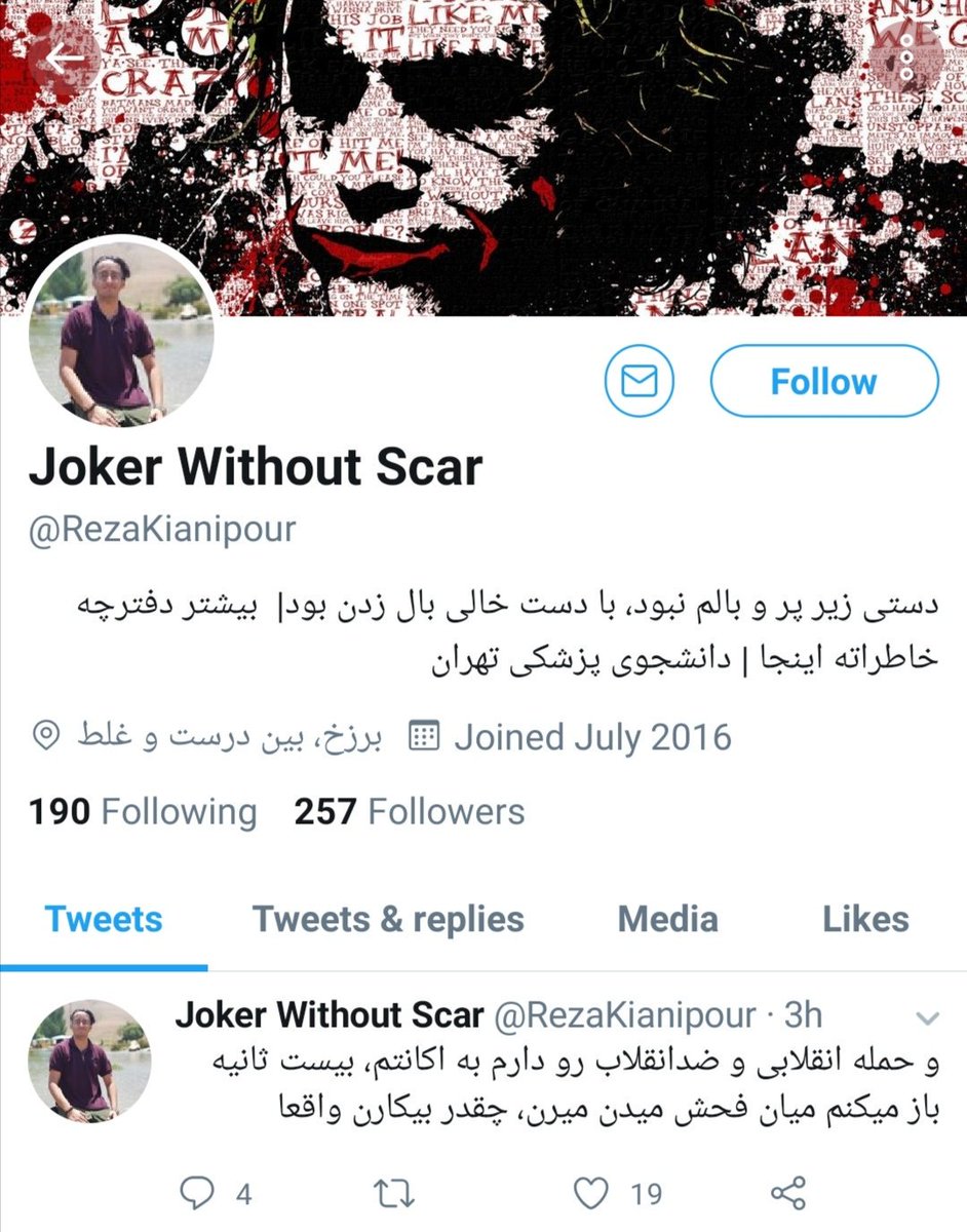 یکی به من بگه دانشجوی پزشکی تو چه المپیادی شرکت میکنه؟ ریاضی فیزیک؟ این قیافش بیشتر به اسکول ها میخوره. بعد چطور ممکنه یک جوجه بچه اینهمه آدم سیاسی که من بلاک کردم از علیز بگیر تا جنلی و داوود زارعی و شانتاژگر و شاهین نجفی فالو کنه؟!
