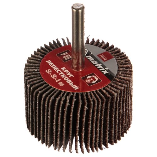 Roue à lamelles pour perceuse Matrix 74174, 50 x 30 x 6 mm, grain P 80, à utiliser avec des perceuses et meuleuses droites avec un diamètre d'assise de 6 mm et une vitesse de rotation maximale de 9500 tr/min. L'équipement est conçu pour le meulage radial des surfaces internes et externes. L'abrasif P 80 permet un traitement intermédiaire du bois et du métal - élimination des bavures, des couches de vernis, de rouille ou de peinture, nettoyage des soudures, préparation des surfaces pour le meulage final. Avantages Commodité de travail - la meule permet de meuler des surfaces en relief, ainsi que de meuler des surfaces en relief. travailler dans des endroits étroits et inaccessibles. Particules abrasives de forme pointue en électrocorindon - le cercle conserve longtemps ses propriétés de travail. Liant en résine de bakélite - l'équipement est résistant à l'usure et durable. La tige en acier - cercle résiste aux charges dynamiques et possède un revêtement en nickel résistant à la corrosion.