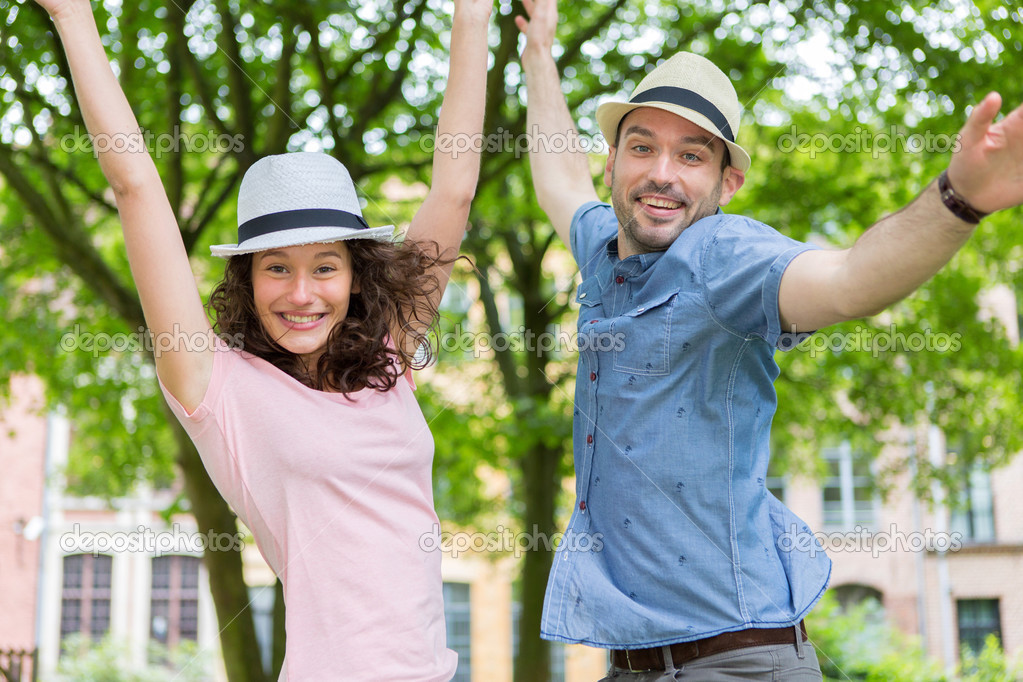 Jeune couple s'amuse