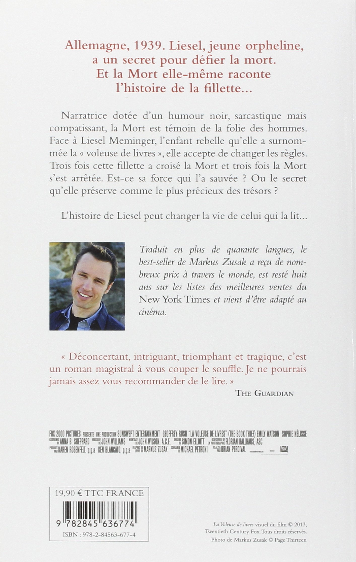 La mort en personne a bien des choses à dire, car elle en a vue beaucoup . Mais toutes ces vies, toutes ces époques ne l'ont pas marqué autant que la jeune Liesel . Par trois fois elle va lui échapper, par trois fois elle va l'intriguer . Dans l'Allemagne nazie des années 40, nous allons suivre l'histoire de cette jeune fille, des habitants de la rue Himmel, de ces parents d . . .