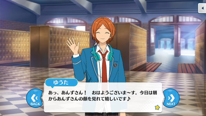 Юта: Аа, Анзу-сан! Доброе ут~ро. Я так рад видеть твоё лицо с утра пораньше ♪