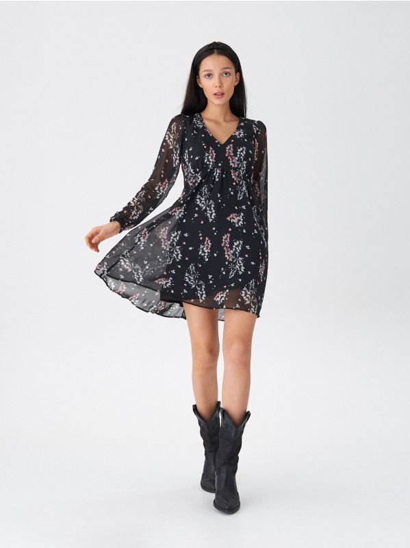 YUHS summer women's mini floral bohemian chiffon dress 2022 V-neck casual beach ruffled short-sleeved sexy dress A-line sundress