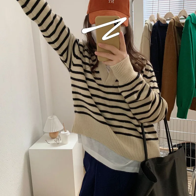 «Jocoo Jolee Autumn Vintage Striped V Neck Knitted Women Pullover Soft Warm Sweater Simple Female Casual Jumper 2022 Streetwear» по лучшей цене на рынке! Всего за 15$ (1425рублей)