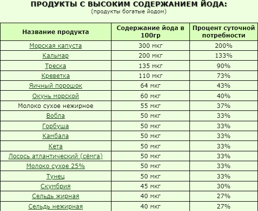 Йод в чем содержится каких продуктах