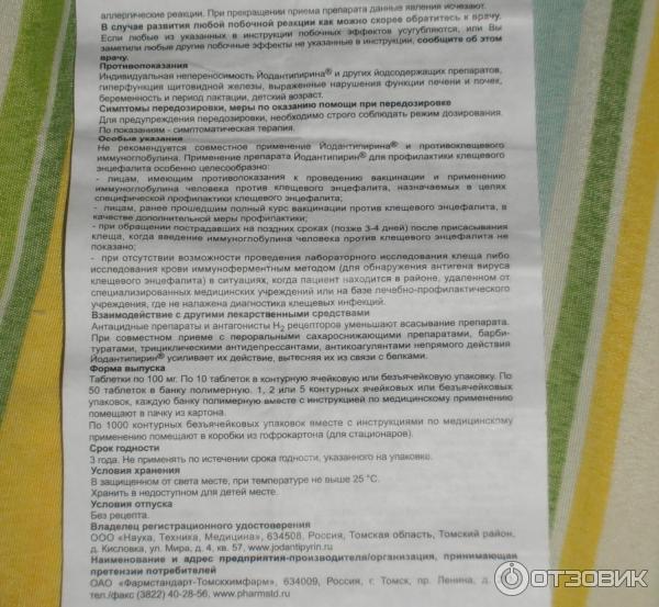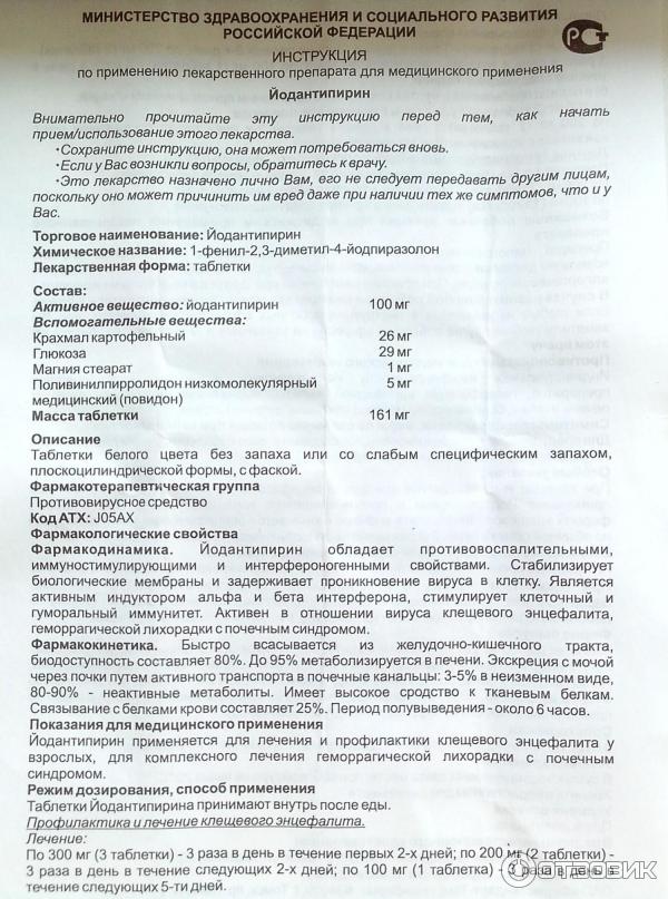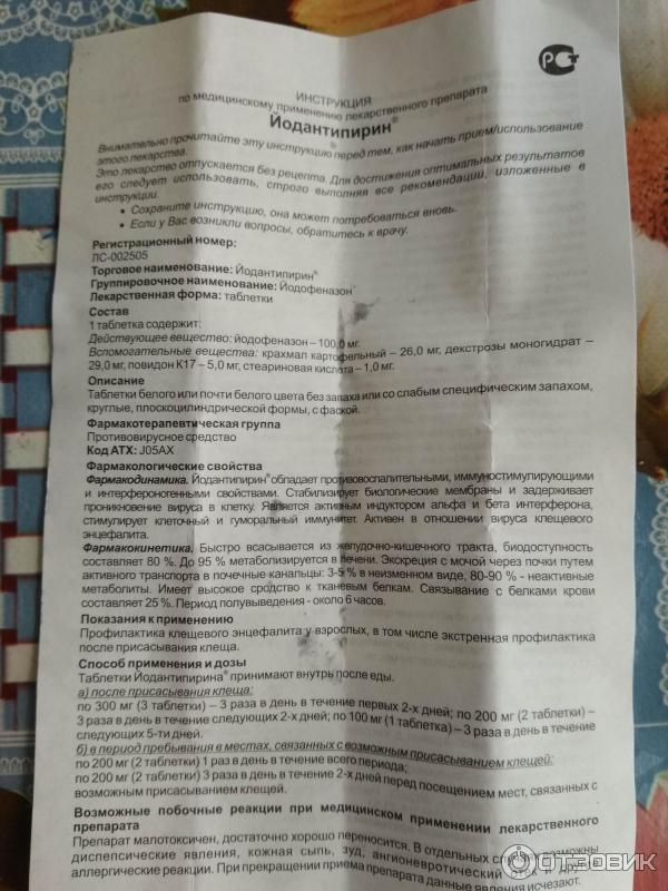 Йодантипирин после укуса клеща