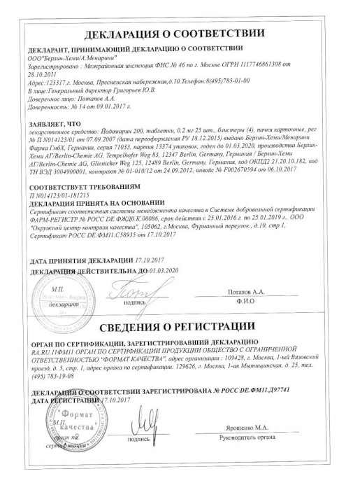 Йодомарин 200 Haqida Malumot