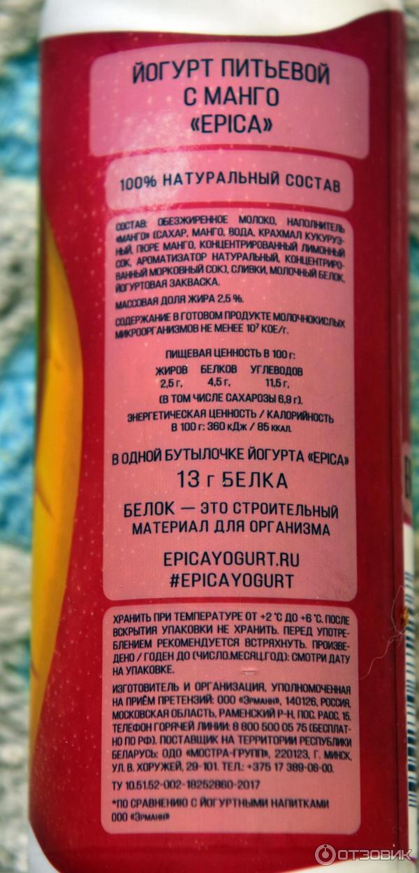Йогурт эпика сколько грамм