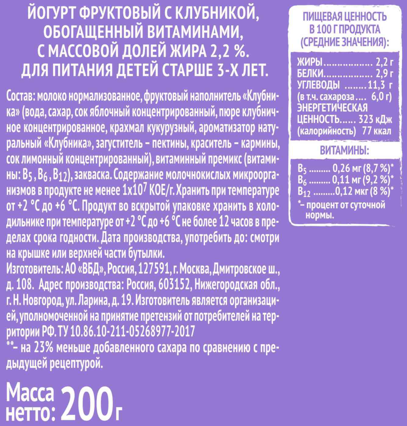 Йогурт содержание сахара