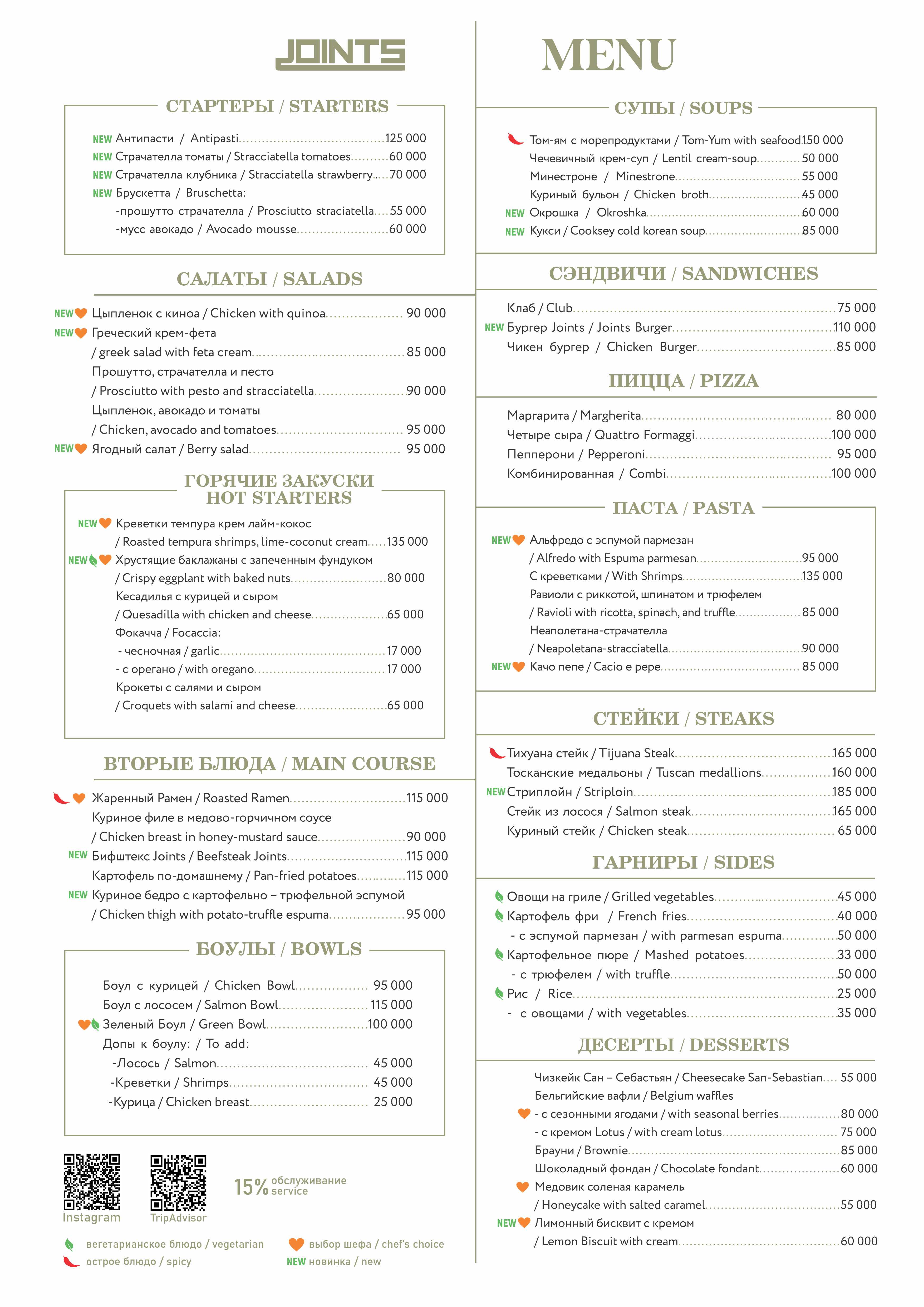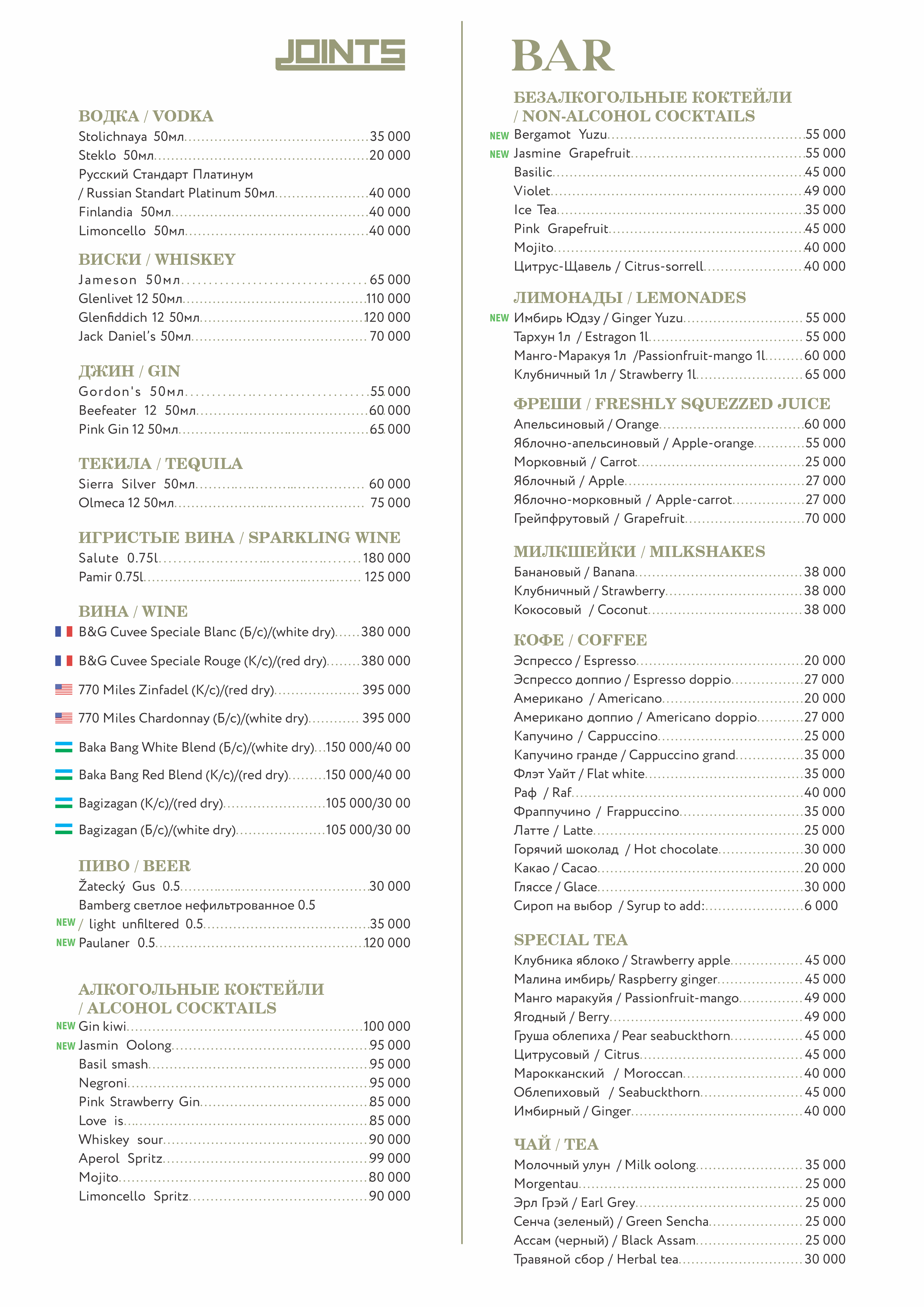 Joints Menu