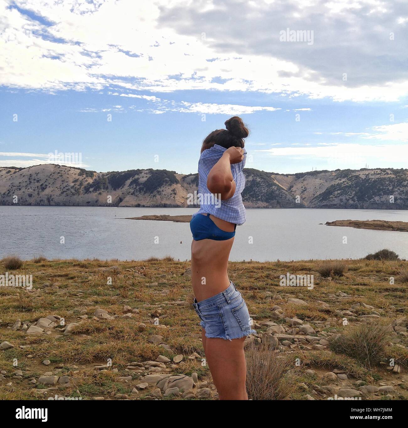 Une lingerie bleue qui lui va à merveille.