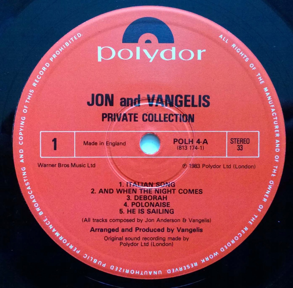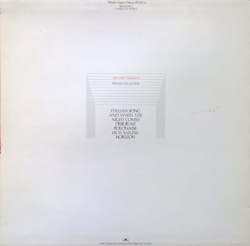 Jon And Vangelis – Private Collection (1983, Vinyl) - Discogs