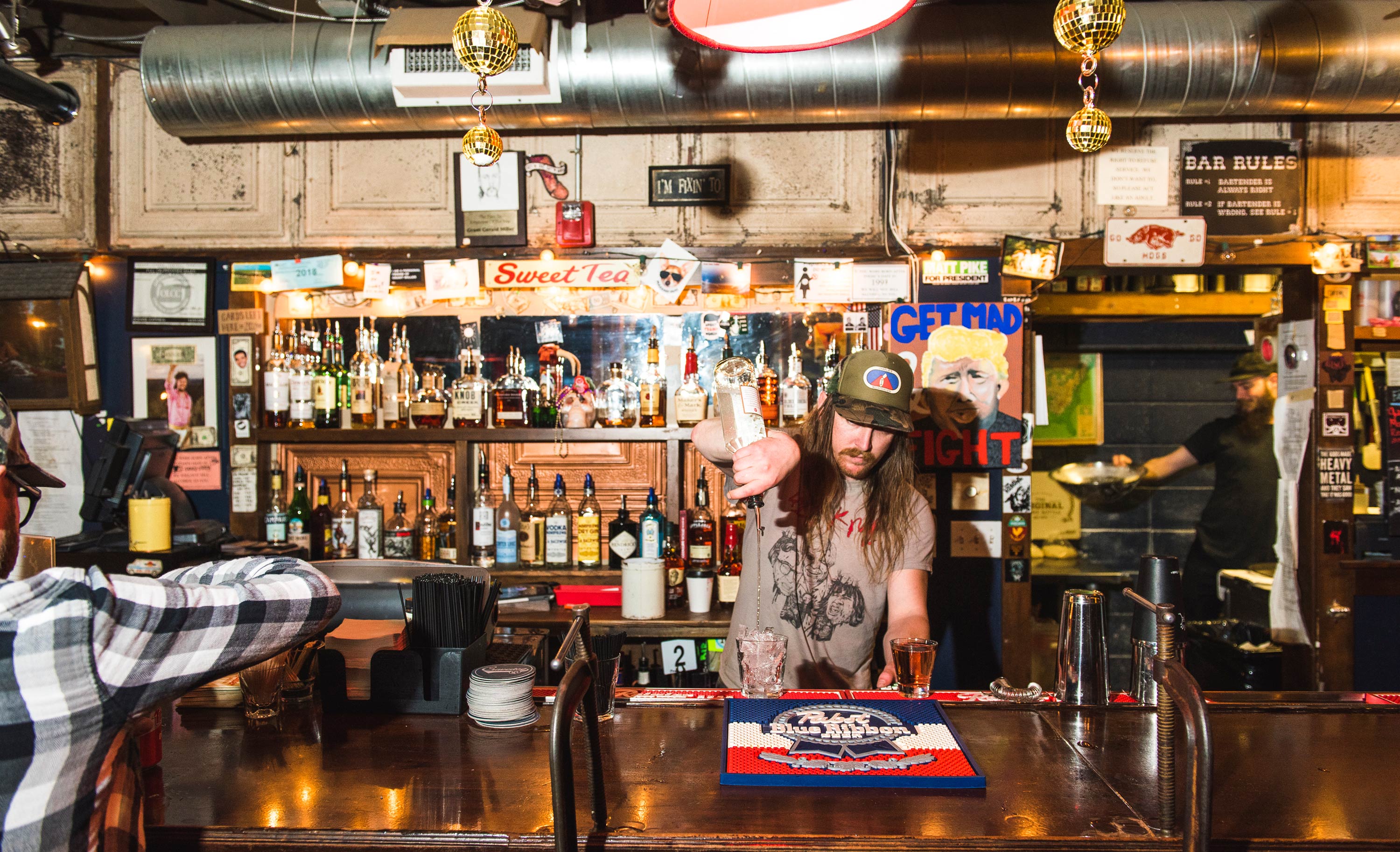 Portland singles and couples flock to it for its sweet onion rings, Kalua pork, teriyaki chicken sandwiches, and, most importantly, drinks served in tiki mugs (e .g ., the Zombie), bowls (e .g ., the Palms Punch), and slushy version (e .g ., the Miami Vice) . The Alibi holds karaoke nights every week as well! 6 .
