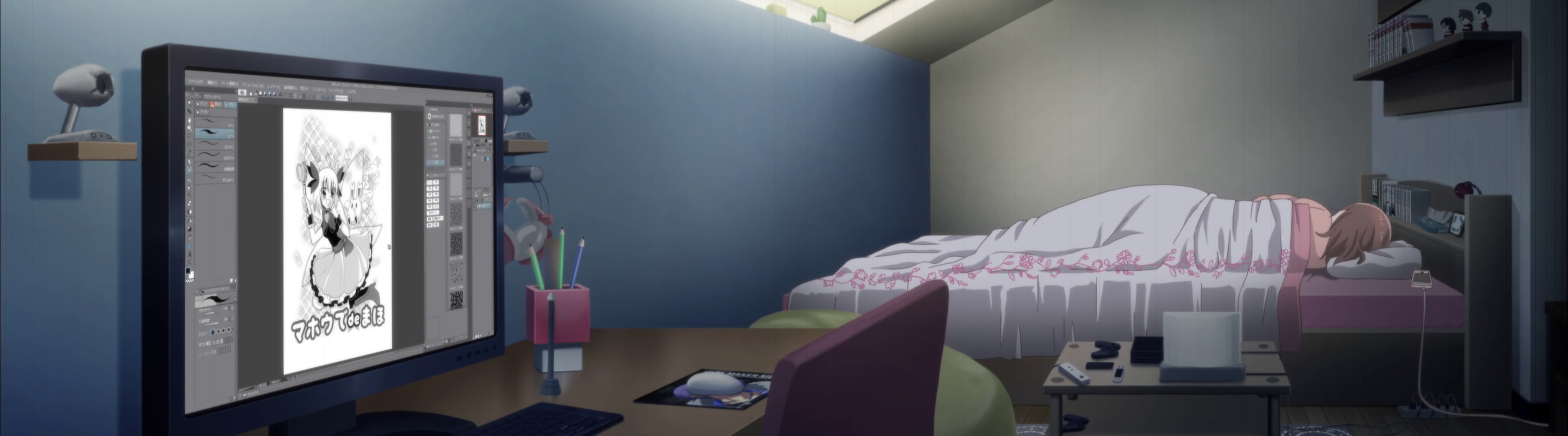 Сдѣланныя в Overmix сшивки кадров, взятых из аниме «Joshikousei no Mudazukai».