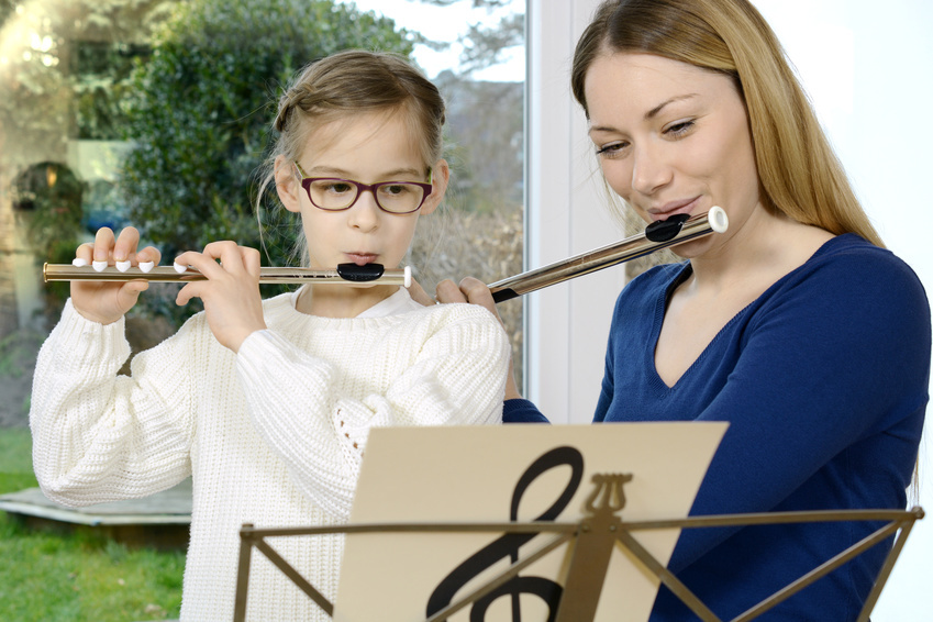 Jouer de la flûte avec le professeur
