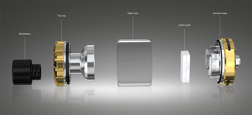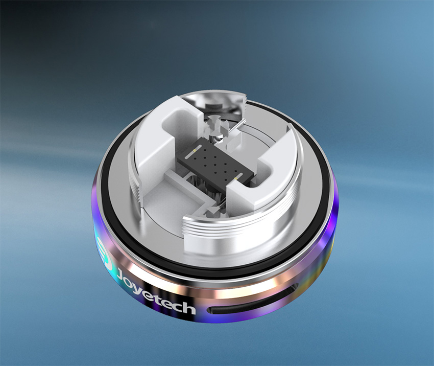 Нагревательным элементом выступает керамическая токопроводящая пластина, которая обдуваются с внутренней стороны. Пластинка перфорирована, благодаря чему жидкость легко обволакивает ее, поступая по единственному хлопковому фитилю. Замена ваты происходит крайне просто – отрежьте хлопок нужной длины и положите в проточку. Joyetech поставляет в комплекте специальную пластинку, которой можно отмерить хлопок перед укладкой. Подобная конструкция напоминает Notch Coil, который славится повышенным сроком службы и большой площадью испарения.