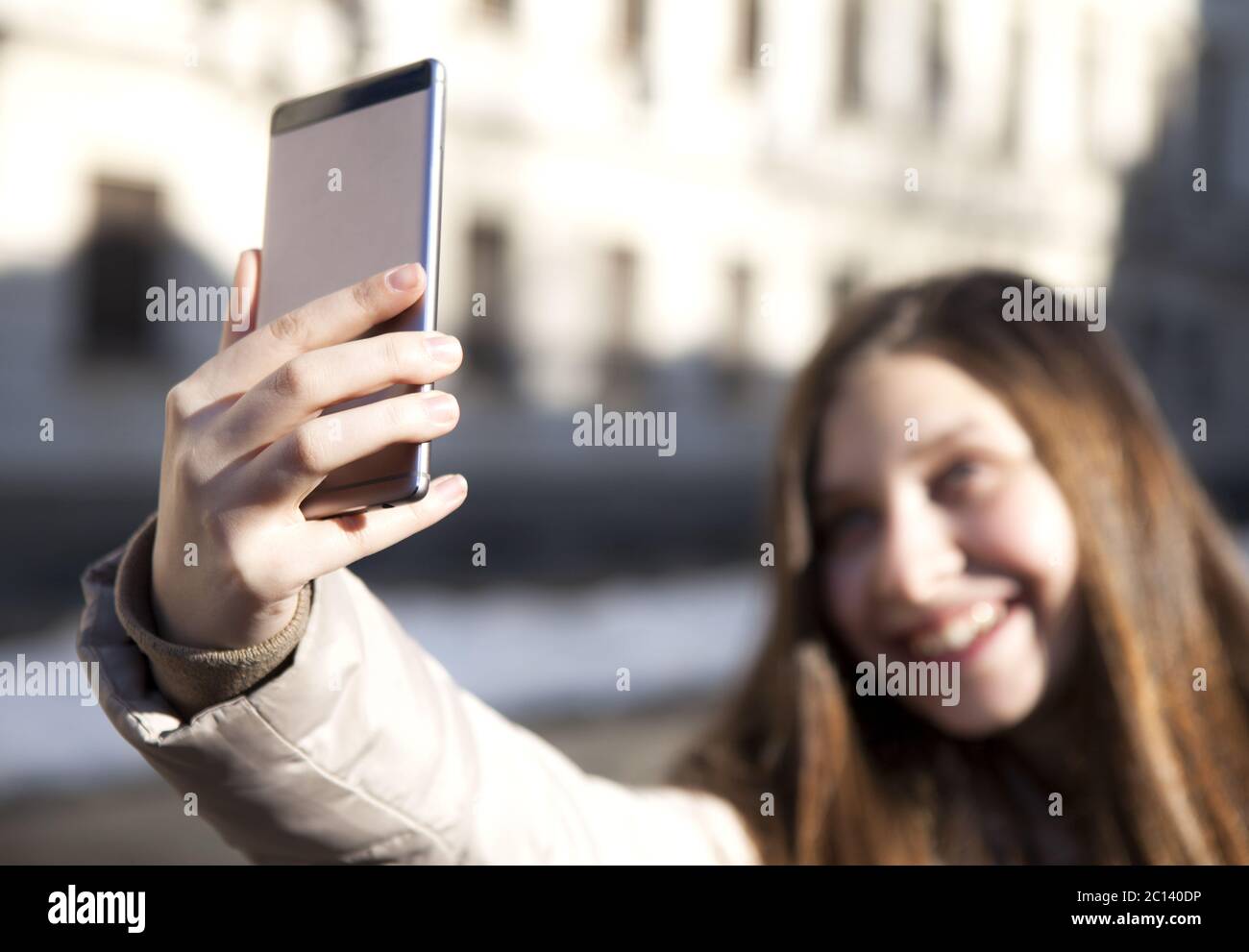 Hübsches Mädchen nimmt sich und Freund auf