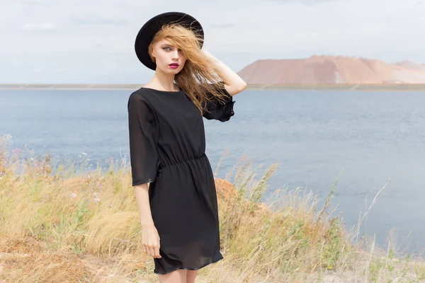 Blondine mit großen natürlichen Brüsten springt auf einen Schwanz