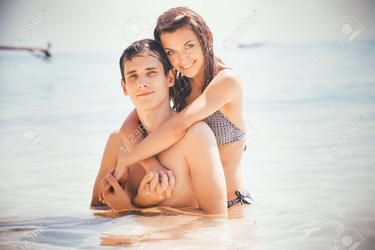 Am Strand lutscht die Amateurin seine Latte