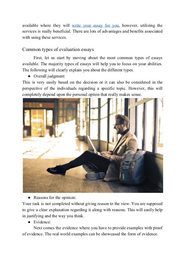 How to write an evaluation essay with examples October 2, 2019 . The first thing to be clear with about writing an evaluation essay , or any kind of writing actually, is getting to understand the main point of this type of essay . The evaluation essay is an opportunity for you to give your profound opinion about certain things . Evaluative essay .