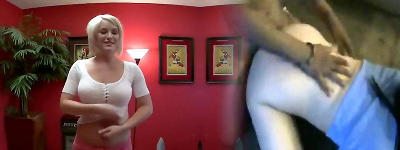 Troia bionda indossa pantaloni in rete con la topa scoperta in una scopata in POV