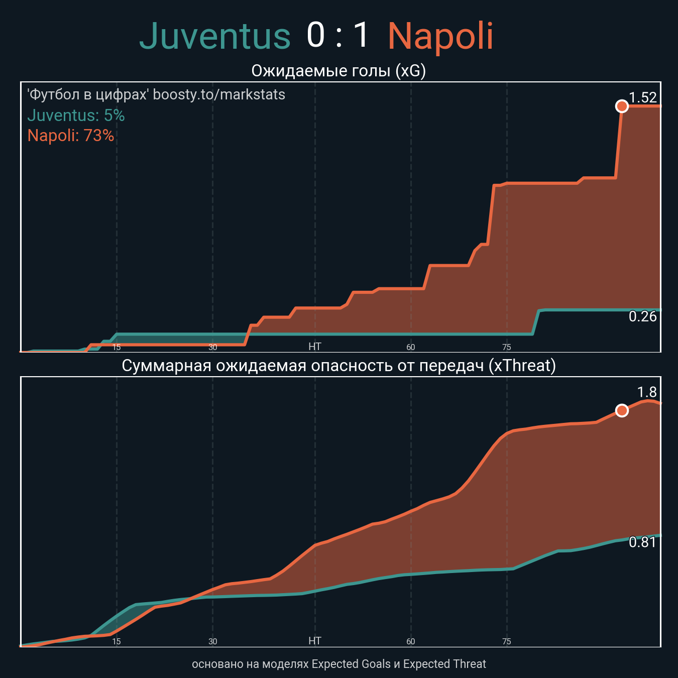 Ожидаемые голы (NPxG): 0.26 - 1.52