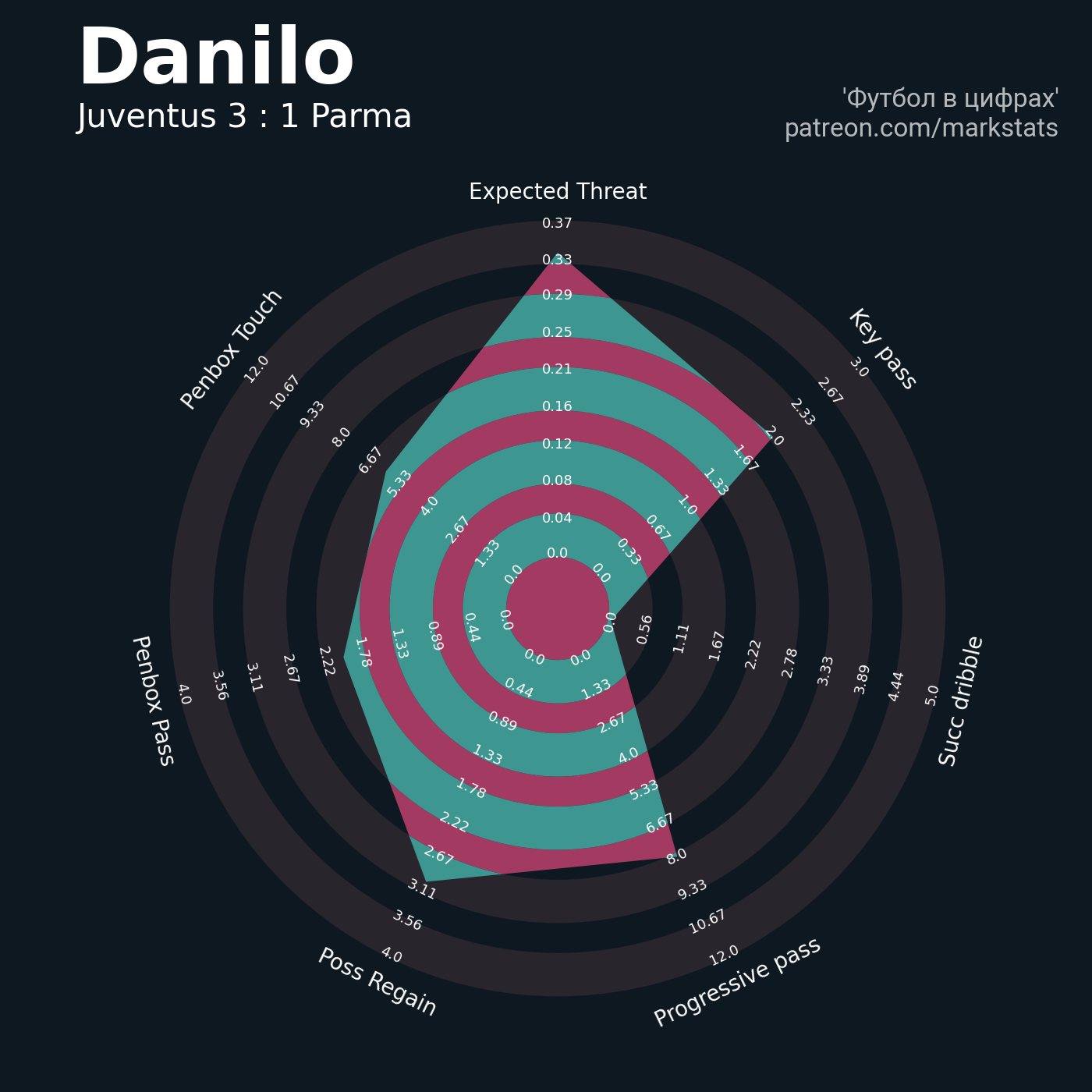 ▪ 0.37 очка xT (+0.0 со стандартов)