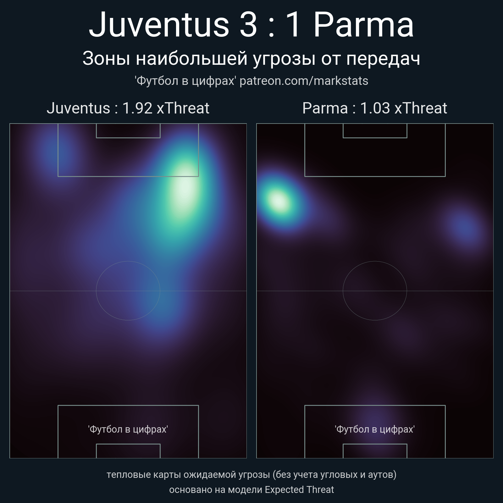 ▪ xThreat без учета угловых: 1.92 - 1.03