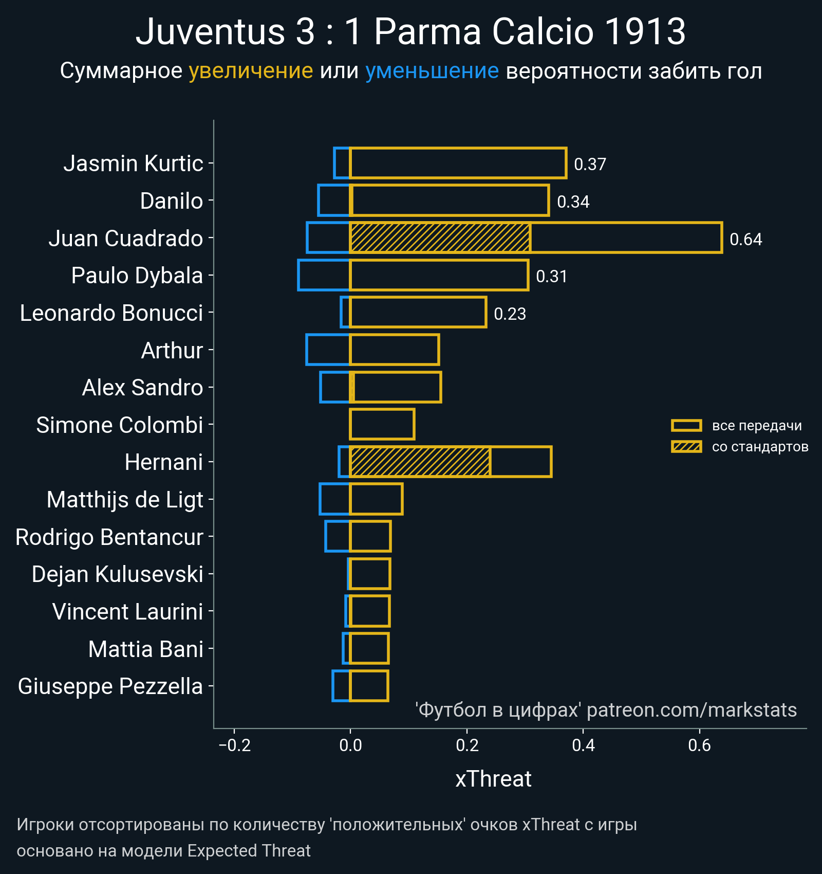 Очки xThreat с игры: