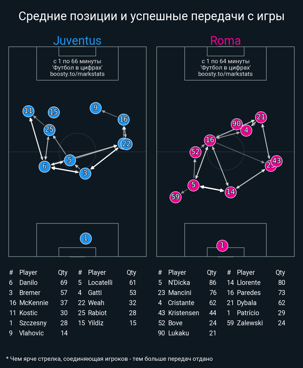 52 успешных передач из 66 попыток (4 под удар, 6 с продвижением, 20 на трети соперника)