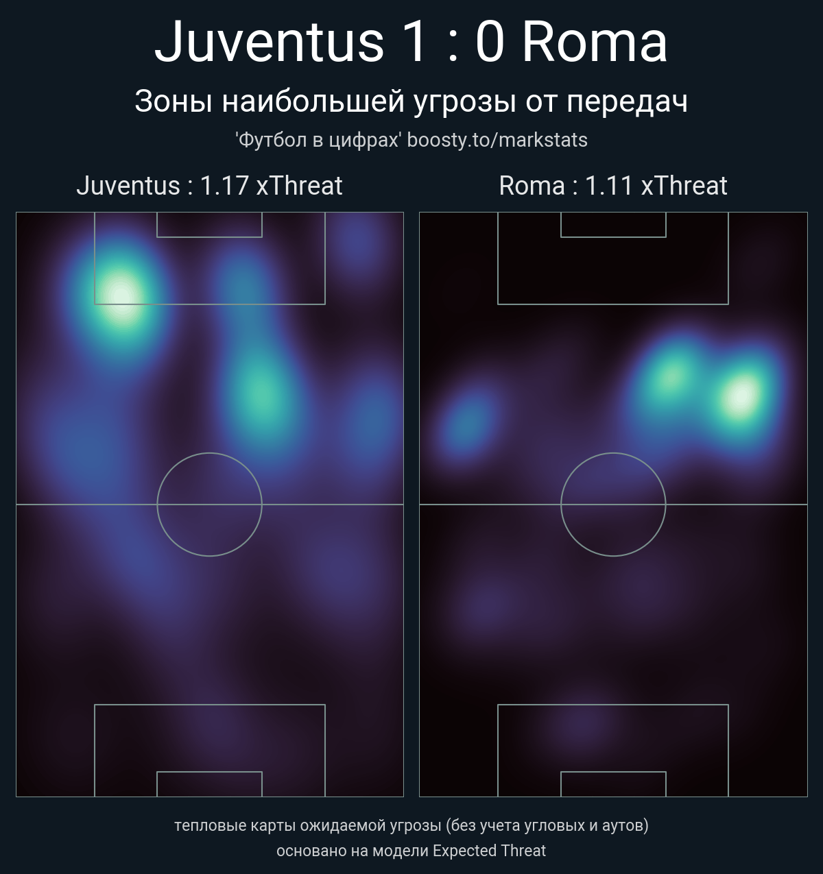 xThreat без учета угловых: 1.17 - 1.11