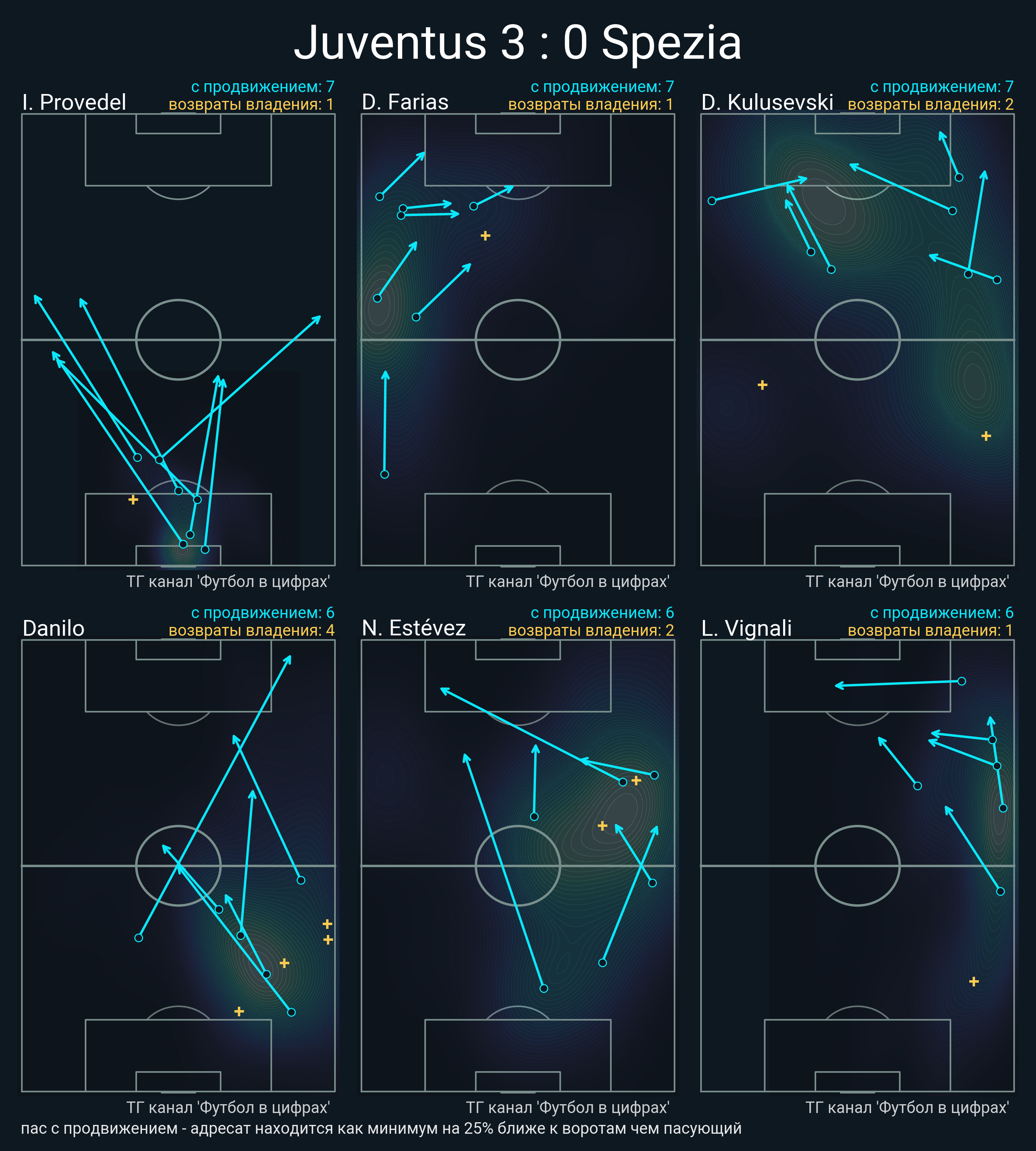 ▪ 7 успешных передач из 8 попыток (2 ассист, 3 под удар, 2 с продвижением, 4 на трети соперника)