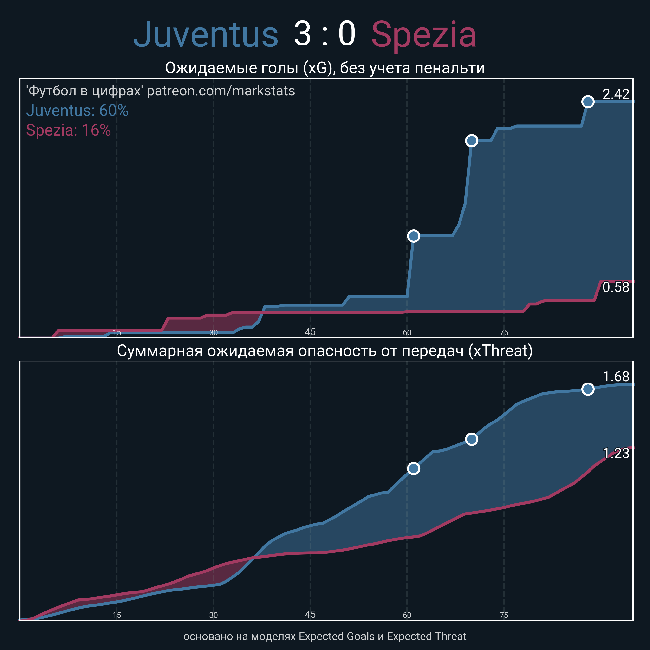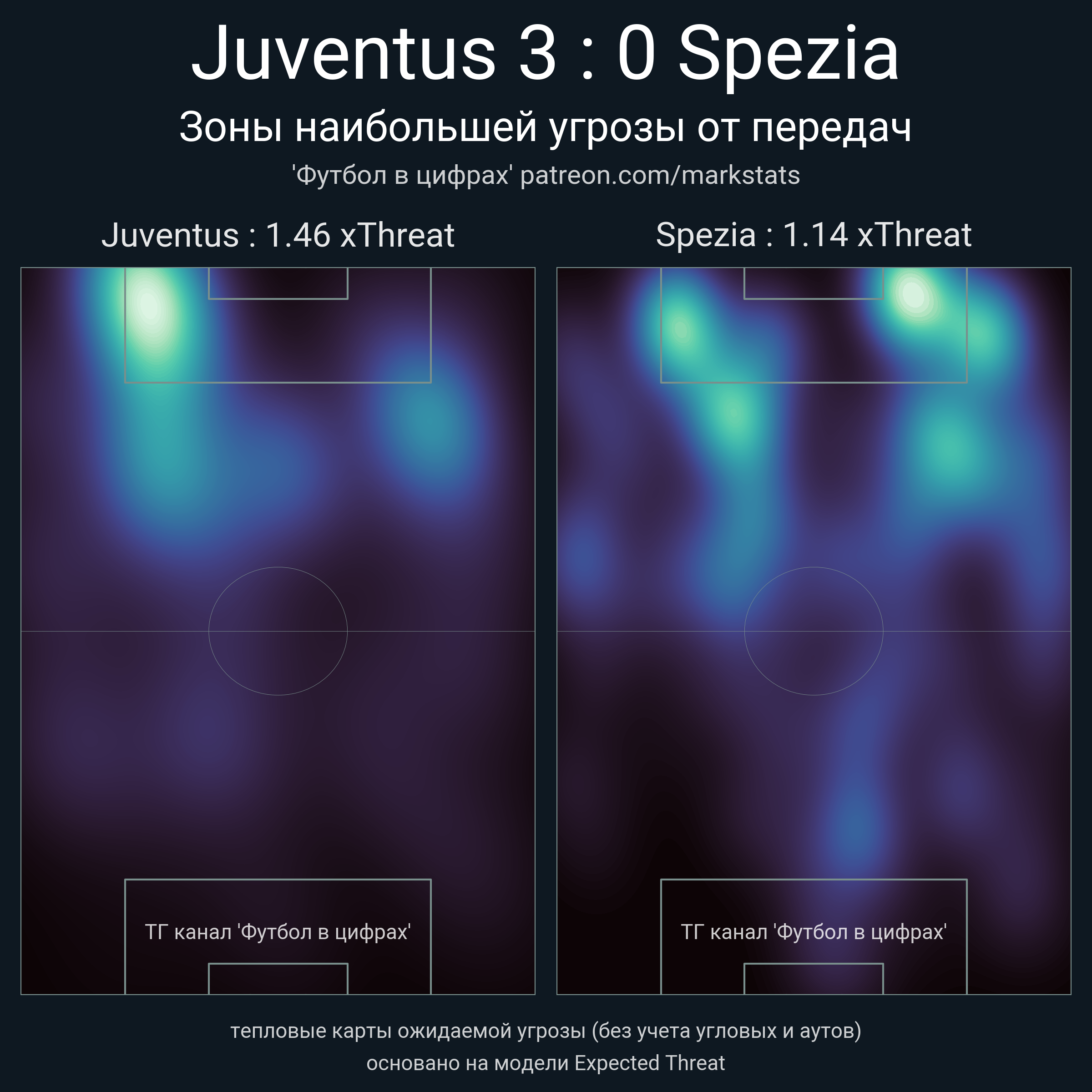 ▪ xThreat без учета угловых: 1.46 - 1.14