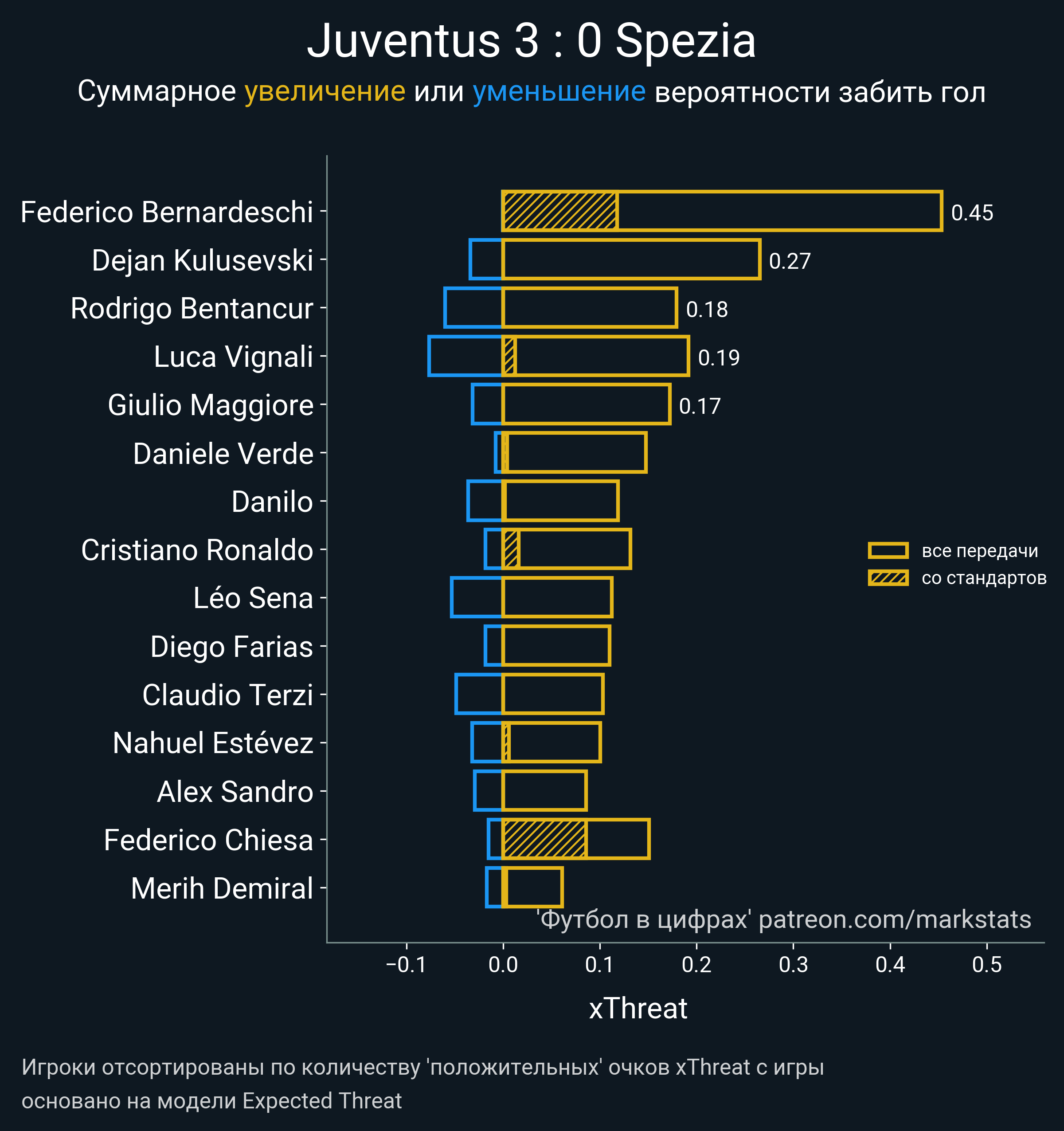 ▪ 0.18 очка xT (+0.01 со стандартов)