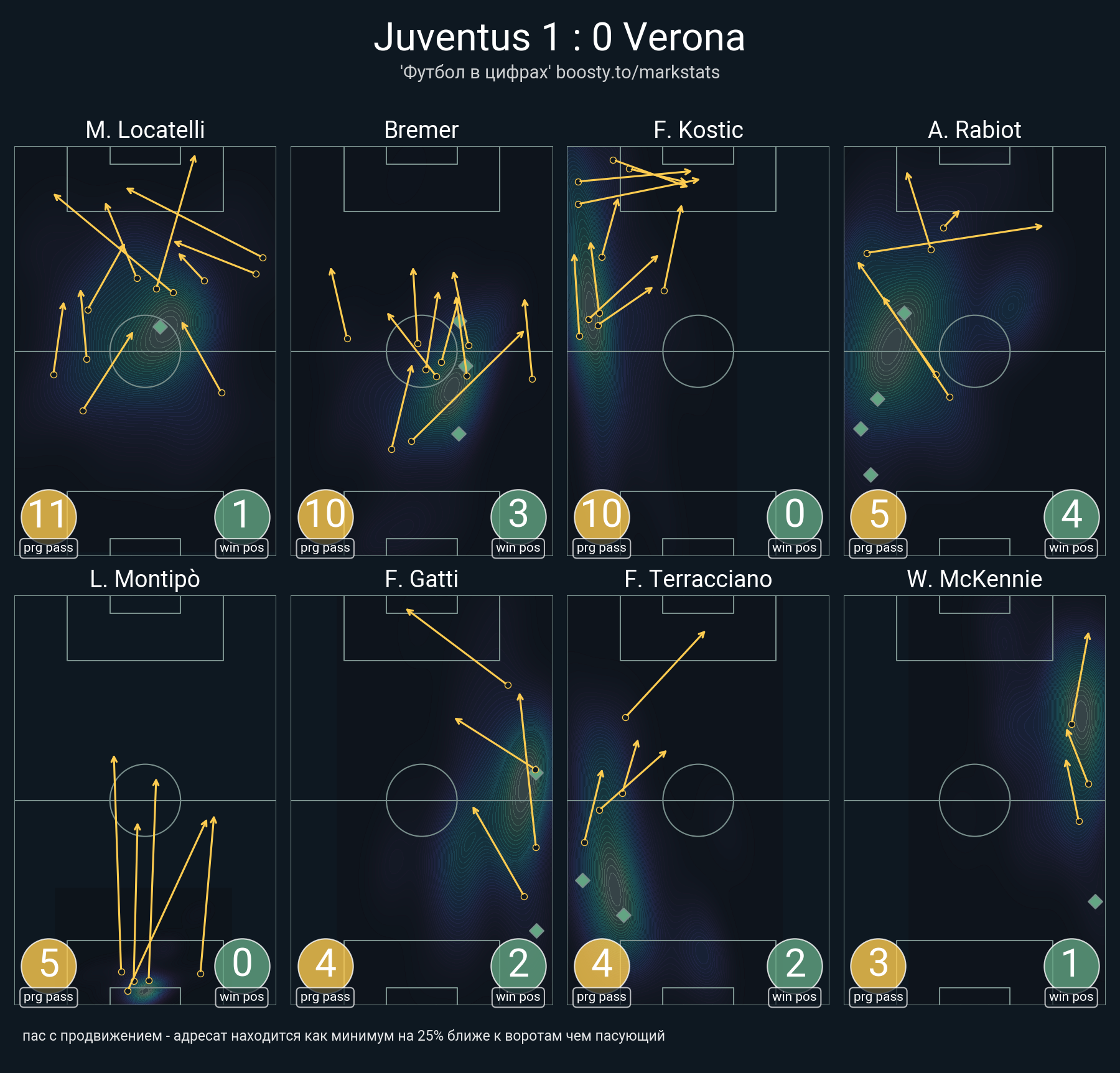 36 успешных передач из 46 попыток (5 с продвижением, 9 на трети соперника)