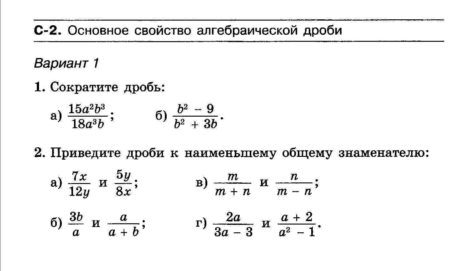 К 2 рациональные дроби вариант а1