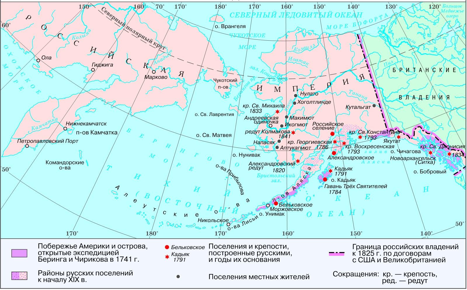 На крючок бесплатно «попалась» Флорида. В 1819 году. США обязались оплатить претензии американских граждан к испанскому правительству, что в итоге составило 5, 5 млн. долларов. Описывать все остальные приобретения было бы сильным отвлечением от темы. Пожалуй, вспомним еще о российском присутствии на Северо-Западе континента. Указ Александра I от 1821 года закреплял за Россией земли, включая Алеутские острова, до 51й параллели. Чуть позднее русский царь сделает небольшую, как он считал, уступку американцам, недовольным русским продвижением, сдвинув границу русских владений с 51й параллели до 54й, что составляло примерно 300 верст тихоокеанского побережья. Российских ресурсов на освоение всех этих огромных территорий (1,5 млн. кв. км) действительно не хватало, но и разбрасываться такими объемами, видимо, не стоило.