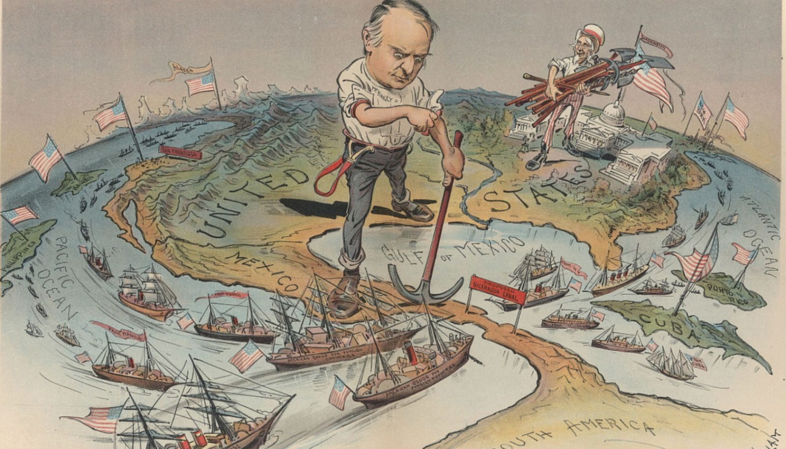 А что же другие державы, прежде всего Великобритания? Некоторое время пытались конкурировать, но постепенно американцы их выдавили. В 1895 году американский госсекретарь Ричард Олни безапелляционно заявил английским дипломатам: «Соединенные Штаты Америки являются реальным сувереном на этом континенте, и они обладают декретом Монро, ограничивающим доступ европейских держав в Западное полушарие». Хамовато, но честно. Твори, что захочется.