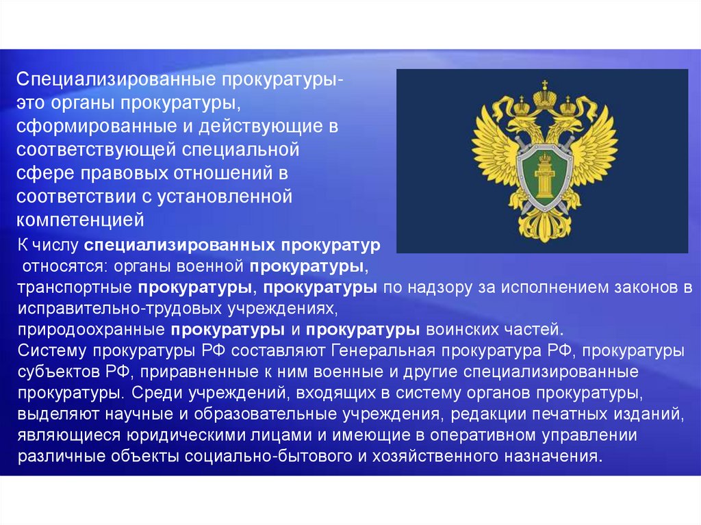 К компетенции прокуратуры относится