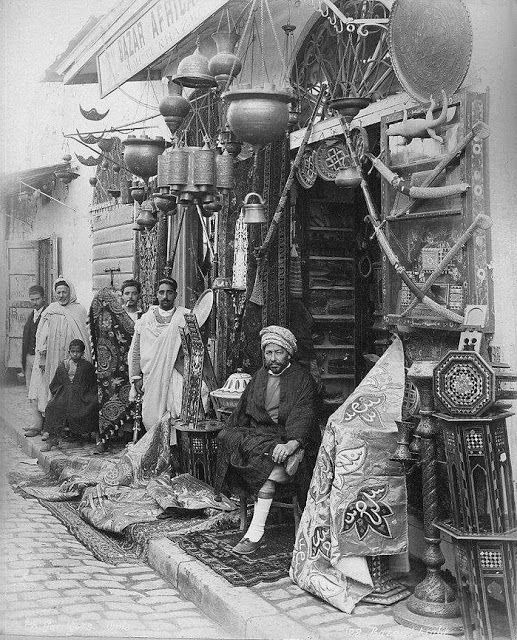 «Почти целую часть города, т. е. мавританскую, составляет базар, где главным образом сосредоточена жизнь и всё мусульманское мужское население. Торгуют кустарными местными произведениями из кожи и стали и дешёвыми французскими товарами да в изобилии – фруктами и парфюмерией, которую так любит поклонник Магомета. Сапожники и портные работают прямо на улице, так что иногда от тесноты трудно пройти по улице. Рядом с сапожником лавка мясника. Всюду толкотня: провозят товары, ходят покупатели, дети снуют во всех направлениях, а степенные старики, чинно усевшись на своих циновках, с гордой восточной негой попивают из маленьких чашечек кофе».